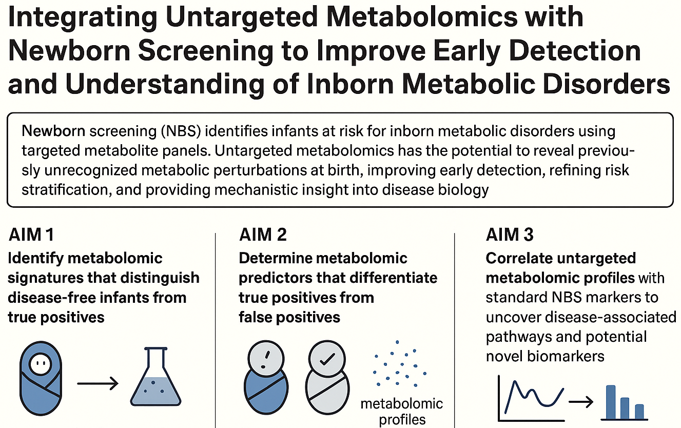 By integrating untargeted metabolomics with existing markers, we aim to identify new biomarkers, refine risk prediction, and map early-life metabolic pathways, paving the way for a more informative, accurate, and biologically grounded newborn screening framework.